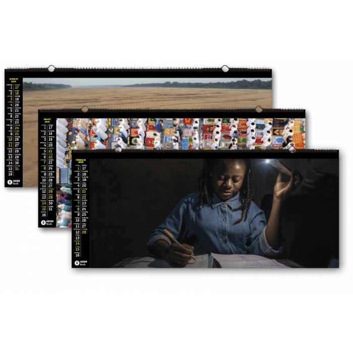De jaarlijkse bestseller, onze populaire Oxfam Novib-kalender, is al tientallen jaren een icoon in duizenden Nederlandse woningen. Laat je inspireren door twaalf indrukwekkende foto's en verhalen van mensen wereldwijd zoals het verhaal van de Palestijnse Fahima. Zij strijdt bij een van de partners van Oxfam in Gaza voor vrouwenrechten en basisvoorzieningen zoals hygiënekits.